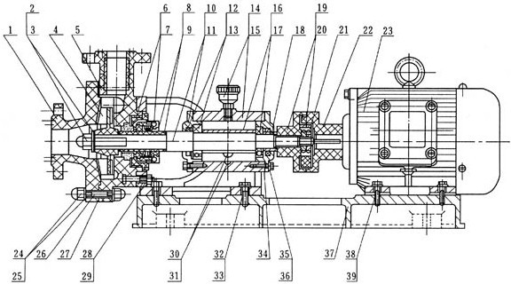 1、FS型玻璃鋼化工泵在安裝前根據(jù)選定泵型,按外形及安裝尺寸做好地腳基礎(chǔ)、安裝時(shí)根據(jù)管路位置的要求,盡量使安裝的位置便利管理和維修。2、FS型玻璃鋼化工泵安裝的位置泵體如果高于液面,必須附裝灌液裝置。 3、FS型玻璃鋼化工泵起動(dòng)前先將液體灌滿泵體后開車,嚴(yán)禁無(wú)介質(zhì)運(yùn)轉(zhuǎn)和倒轉(zhuǎn),否則泵體內(nèi)因缺泛液體冷卻而損壞機(jī)械密封。 4、停車時(shí)應(yīng)開關(guān)液管閥門,避免液體倒流。5、維修時(shí),先拆下泵體,再松開機(jī)械密封螺釘,折下機(jī)械密封。 6、如果更換滾珠軸承或泵軸時(shí),必須折下機(jī)架,松開前端軸承蓋4只螺釘,折下泵軸后端園螺母和聯(lián)軸節(jié),將泵軸向前端方向打出即可,再后折下后端軸封蓋。 7、檢修和更換易損件后進(jìn)行重新裝配時(shí)。 1)、先將前后軸承和油封分別裝在前后封蓋內(nèi),并將帶軸承的前封蓋裝在FS型玻璃鋼離心泵軸上,再將帶前軸承封蓋的泵軸裝在機(jī)架上。2)、將軸承壓套套在泵軸上,再將帶軸承的后封蓋裝在泵軸及機(jī)架上。 3)、套好壓圈,裝好聯(lián)軸節(jié)和并緊固螺母。 4)、將機(jī)構(gòu)密封動(dòng)環(huán)套在泵軸上。 5)、把靜環(huán)裝在FS型玻璃鋼離心泵體內(nèi),并拼緊壓緊螺套。 6)、將帶靜環(huán)的FS型玻璃鋼離心泵體套在機(jī)架上,調(diào)試一下機(jī)械密封動(dòng)靜環(huán)的配合(一般緊3-3.5mm)先將泵體拿下。 7)、將機(jī)械密封動(dòng)環(huán)裝緊固定在泵軸上,再將泵體裝在機(jī)架上,用手在聯(lián)軸節(jié)上轉(zhuǎn)一下機(jī)械密封動(dòng)靜環(huán)配合是否符合。8)、將葉輪裝在泵軸上,并用四氟墊片調(diào)正好葉輪與泵停間隙(一般緊2-2.5mm之間)墊好防腐墊片,再并緊葉輪并帽,最后墊好泵殼墊片,裝好泵蓋,擰緊防腐螺母。9)、將裝好畢的泵斗裝在底板上,并調(diào)正好聯(lián)軸器的間隙和電動(dòng)機(jī)軸線垂直。 8、FS型玻璃鋼化工泵注意平時(shí)保養(yǎng),經(jīng)常檢查泵運(yùn)行是否平穩(wěn),有無(wú)異常震動(dòng),注意更換彈性塊,視油標(biāo)補(bǔ)充軸承的潤(rùn)滑油,定期更換機(jī)架中的潤(rùn)滑油。